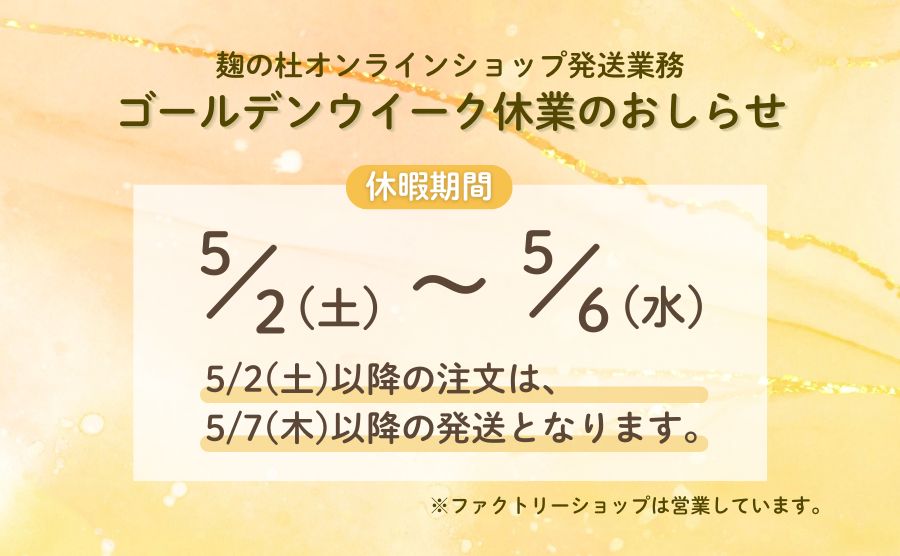 - 2020/5/1 麹の杜オンラインショップリニュアルオープンいたしました