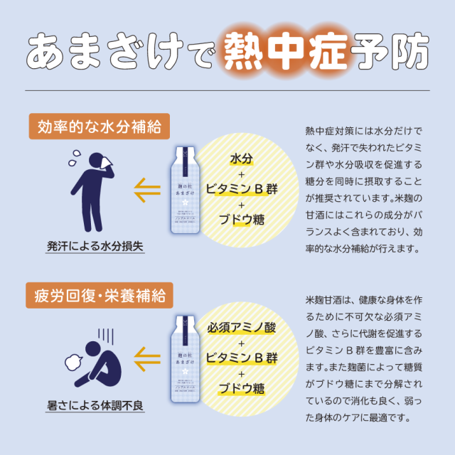 ごくごく飲めるフレッシュあまざけ スポーツ後の栄養補給、熱中症対策に!